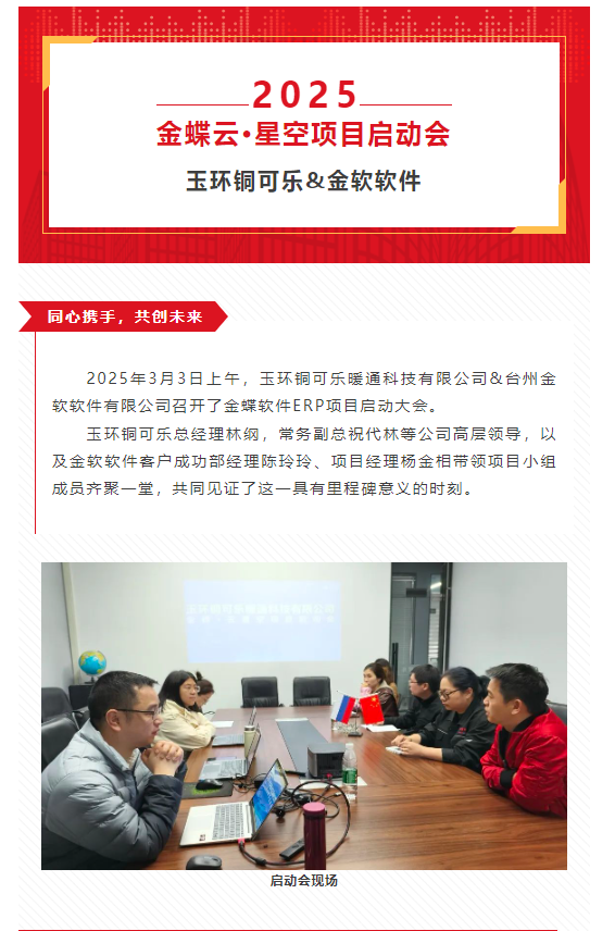 【喜報】玉環銅可樂&金軟軟件金蝶云星空ERP項目啟航